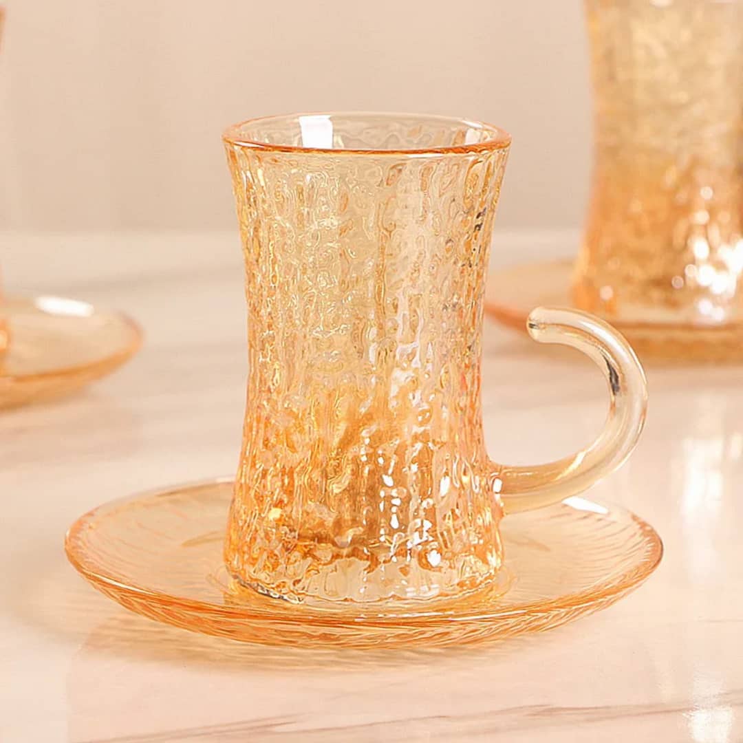 هذا الطقم المكون من 6 أكواب قهوة زجاجية مع أطباق مصنوعة من الزجاج عالي البورون، مما يوفر مقاومة للحرارة وتصميم كلاسيكي مناسب للاستخدام المنزلي أو في المطاعم أو الحفلات. يدعم المنتج الخصائص الصديقة للبيئة وهو مثالي كهدية بفضل شكله المستدير العصري