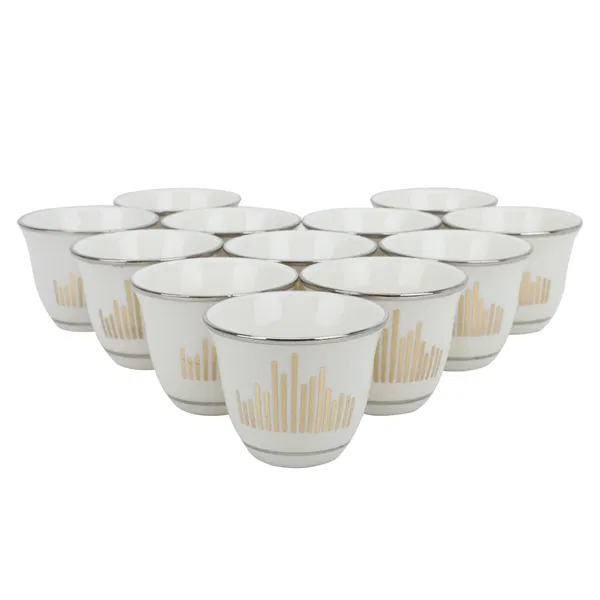 طقم اقلاص قهوة سيراميك بخطوط ذهبي بدون يد 12 قطعة YAB-183