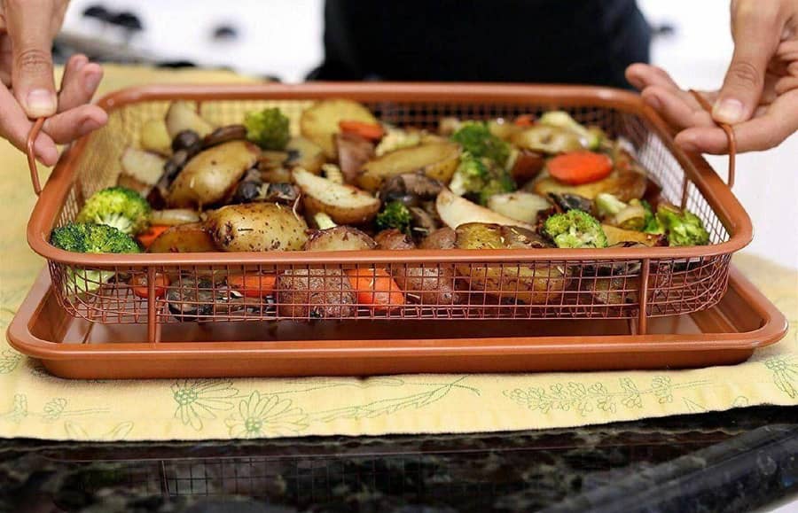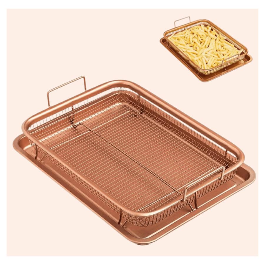 مصممة لطهي الطعام المقلي في الفرن، مما يساعد على تصفية الدهون والزيوت الزائدة والحفاظ على نكهة الطعام وقرمشته.