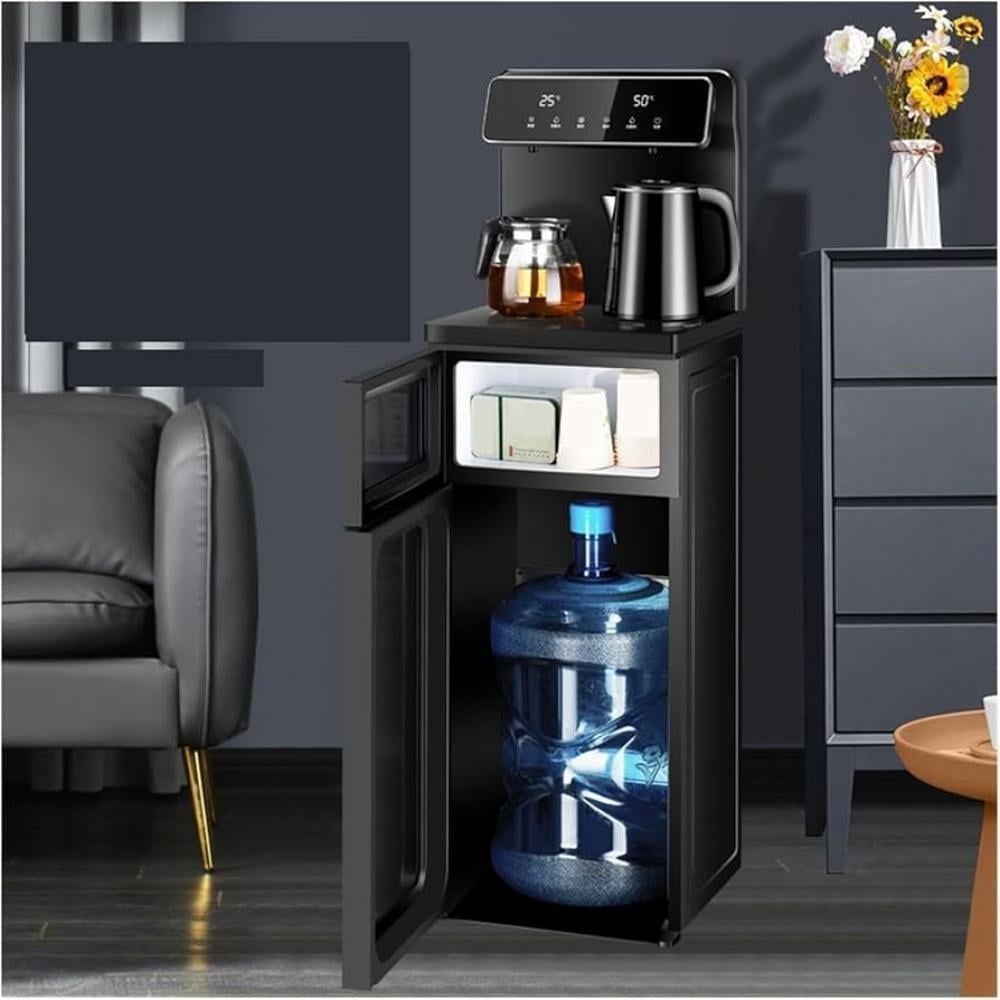 تصميم أنيق باللون الأسود مع نظام تحميل سفلي لقارورة المياه، مما يسهل تغيير القوارير.
