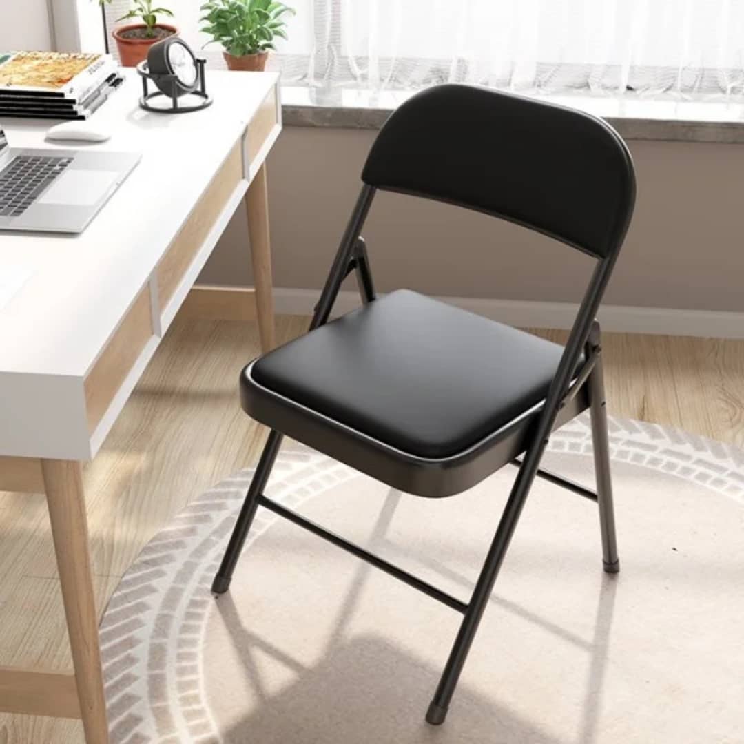 كرسي عملي ومتين، يجمع بين الصلابة والراحة، مصنوع من هيكل حديدي قوي مع تصميم قابل للطي لسهولة التخزين والنقل. يتميز بوجود مسند ظهر مبطن بإسفنج على شكل مربع يمنح دعماً مريحاً للظهر، مما يجعله مناسباً للاستخدام في المناسبات، الجلسات، القاعات، أو حتى الاستخدام المنزلي المؤقت.