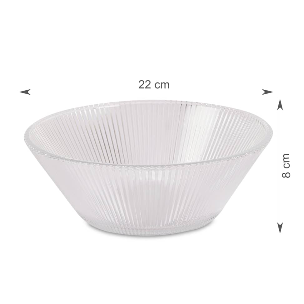 مطيبة أنيقة وعملية مصنوعة من زجاج شفاف ومقلم، بتصميم قائم وعميق مثالي لتقديم الحلويات، الجيلي، الكريمة، الفواكه، أو السلاطات الخفيفة.