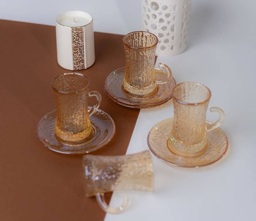 هذا الطقم المكون من 6 أكواب قهوة زجاجية مع أطباق مصنوعة من الزجاج عالي البورون، مما يوفر مقاومة للحرارة وتصميم كلاسيكي مناسب للاستخدام المنزلي أو في المطاعم أو الحفلات. يدعم المنتج الخصائص الصديقة للبيئة وهو مثالي كهدية بفضل شكله المستدير العصري