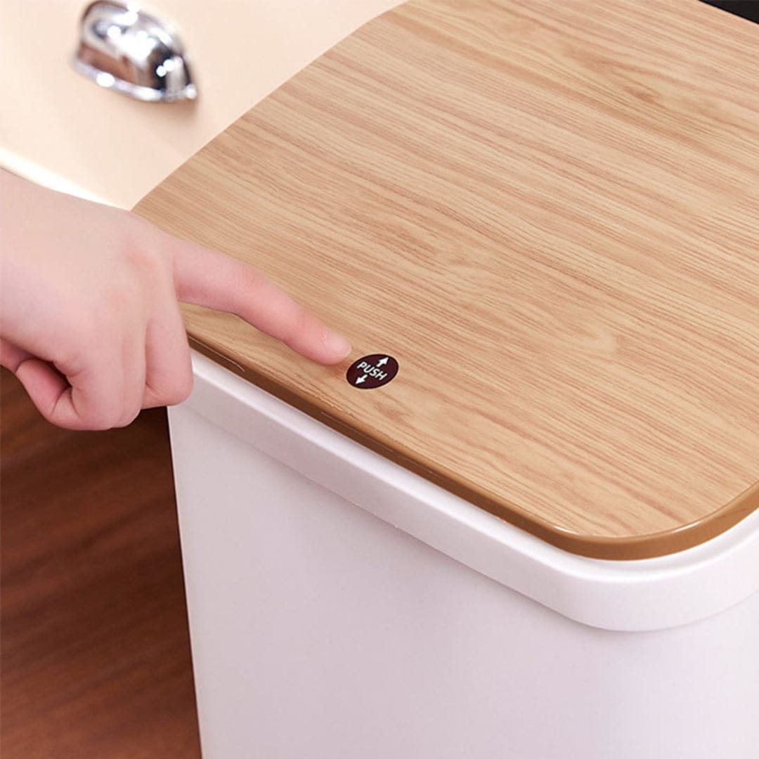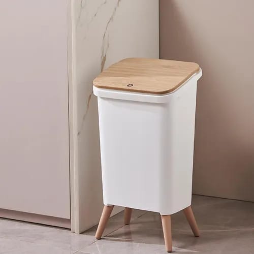 محكم الإغلاق لمنع انتشار الروائح الكريهة، ويتميز بسطح بتصميم خشبي جذاب