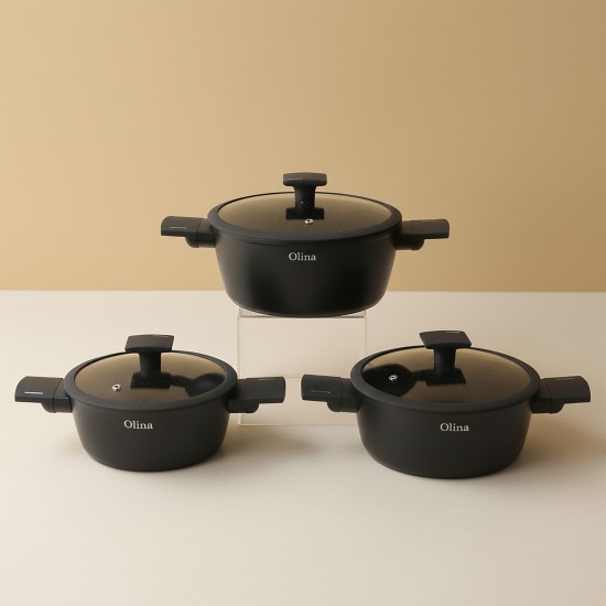 طقم أواني طهي من ماركة Olina، والذي يتميز بتصميم عصري يجمع بين الأناقة والعملية.
