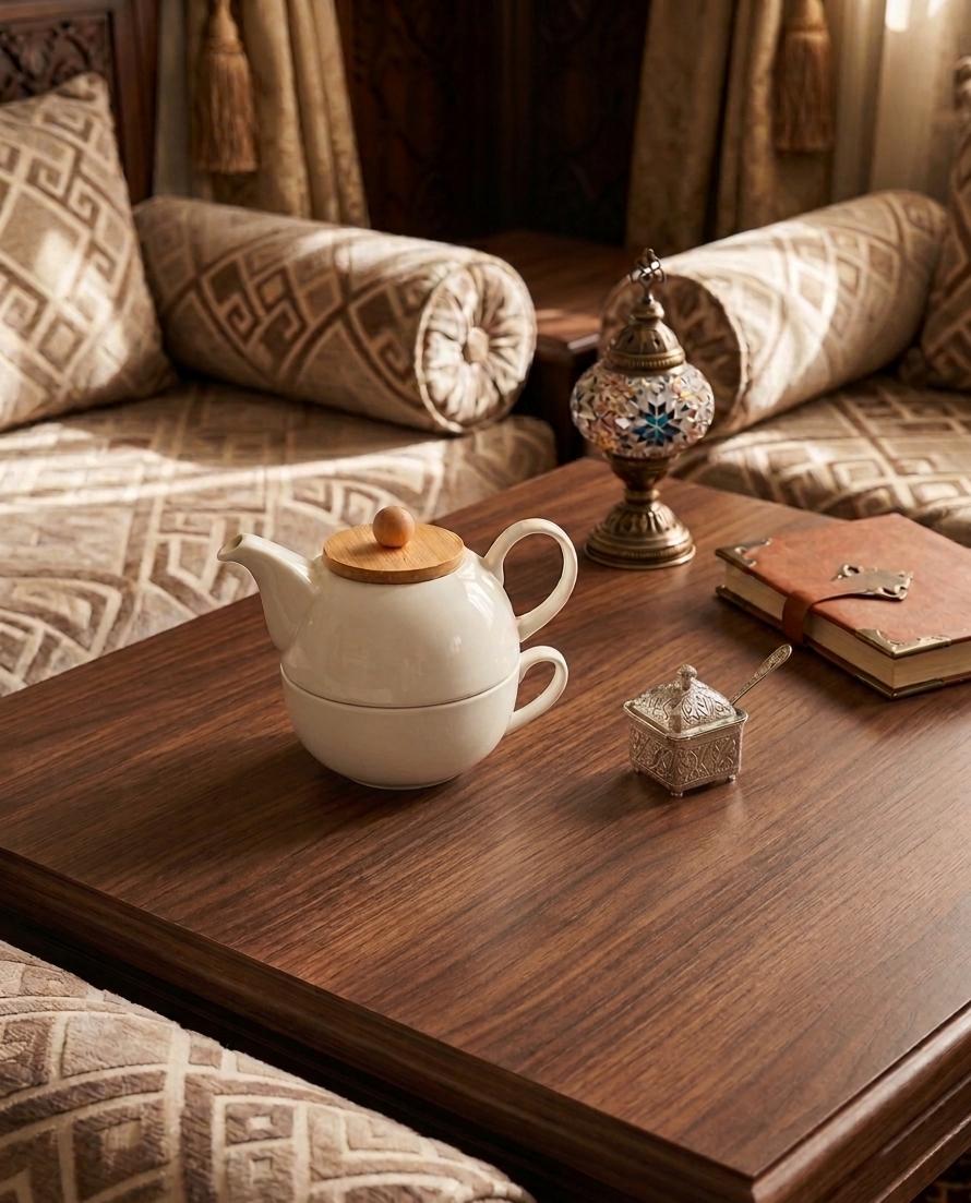 طقم براد مع فنجان سيراميك غطاء خشب AZ-1256