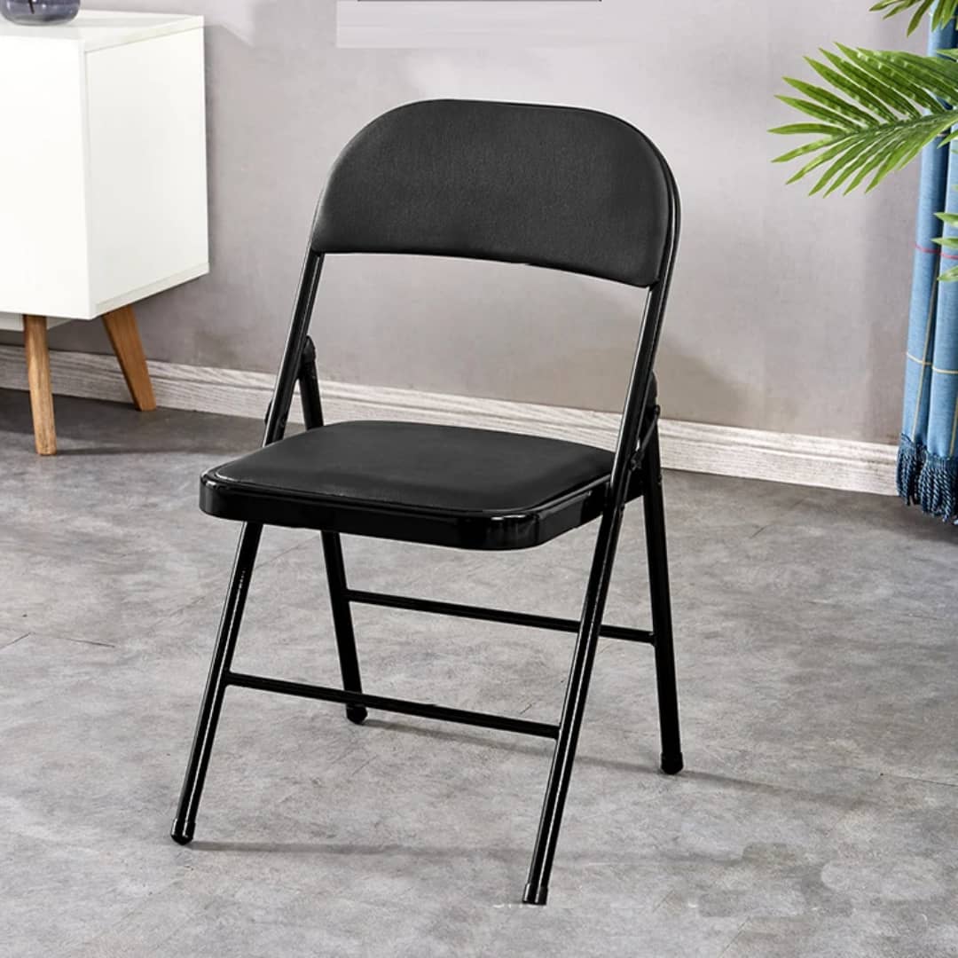 كرسي عملي ومتين، يجمع بين الصلابة والراحة، مصنوع من هيكل حديدي قوي مع تصميم قابل للطي لسهولة التخزين والنقل. يتميز بوجود مسند ظهر مبطن بإسفنج على شكل مربع يمنح دعماً مريحاً للظهر، مما يجعله مناسباً للاستخدام في المناسبات، الجلسات، القاعات، أو حتى الاستخدام المنزلي المؤقت.