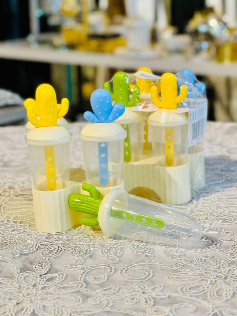 مجموعة مبتكرة من قوالب الآيسكريم البلاستيكية بشكل مدوّر مع أعواد على هيئة صبّار لطيف، تحتوي على 6 خانات لتجهيز المثلجات المنزلية بسهولة. عملية وصحية، تساعدك على صنع آيسكريم منعش بنكهاتك المفضلة للأطفال والكبار، مع تصميم ممتع يضيف بهجة للمائدة الصيفية.