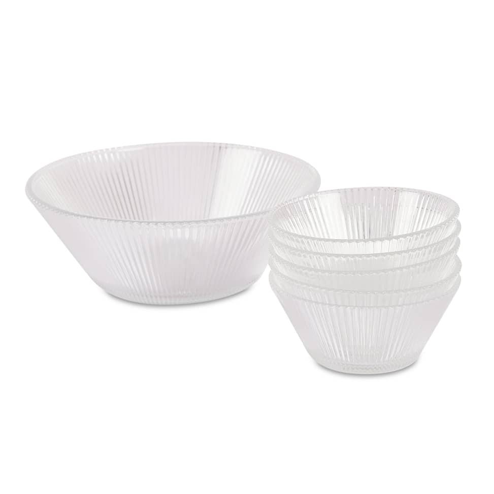 مطيبة أنيقة وعملية مصنوعة من زجاج شفاف ومقلم، بتصميم قائم وعميق مثالي لتقديم الحلويات، الجيلي، الكريمة، الفواكه، أو السلاطات الخفيفة.